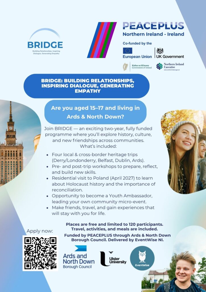 BRIDGE is a cross-community education programme for 120 young people aged 15–17 from Ards & North Down. Participants will explore heritage at home and abroad through: